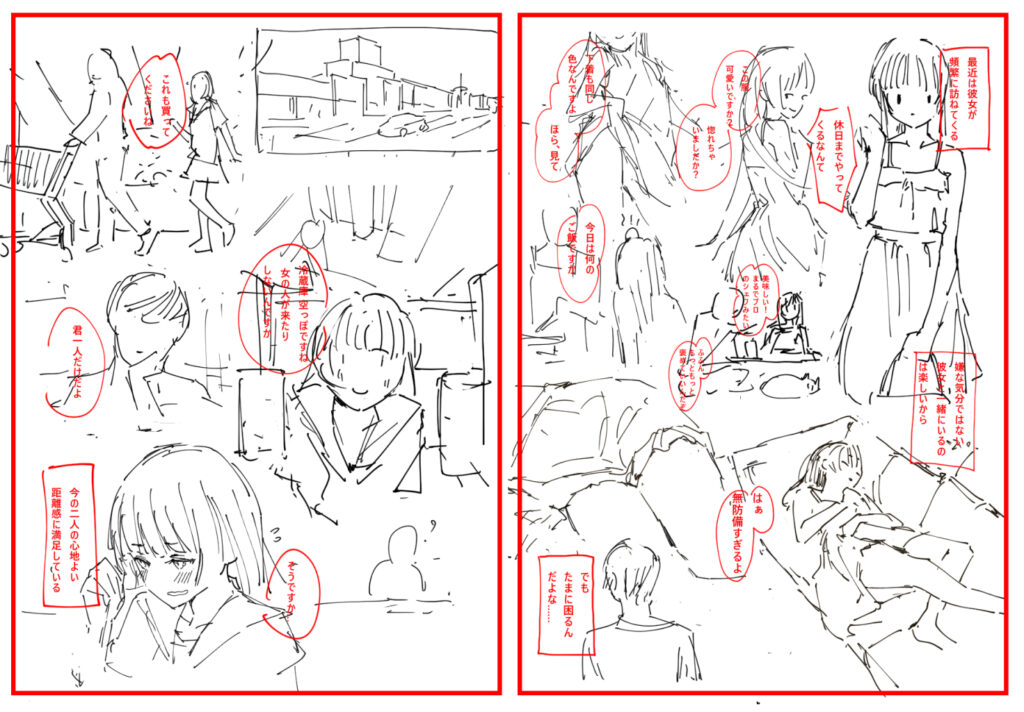 พอวันจันทร์ บก. มาตอบว่าเข้าใจแล้ว โอเคแนวทางนั้น แล้วก็ให้แก้จุดโน้นจุดนี้… อะไรวะ… แล้วไอ้ที่กุหงุดหงิดจะไปลงที่ไหน… แต่โอเค้ คุยกันก็เข้าใจนี่หว่าเนอะ เขาให้เลือกว่าช่วงต้นจะเป็นความสัมพันธ์แบบพลาโตนิคหรือเซ็กส์เฟรนด์ก็ตามใจเลย สุดท้ายผมก็เลือกแบบพลาโตนิค พอวาดเสร็จ…. อ่านดู…ใช้ได้ว่ะ