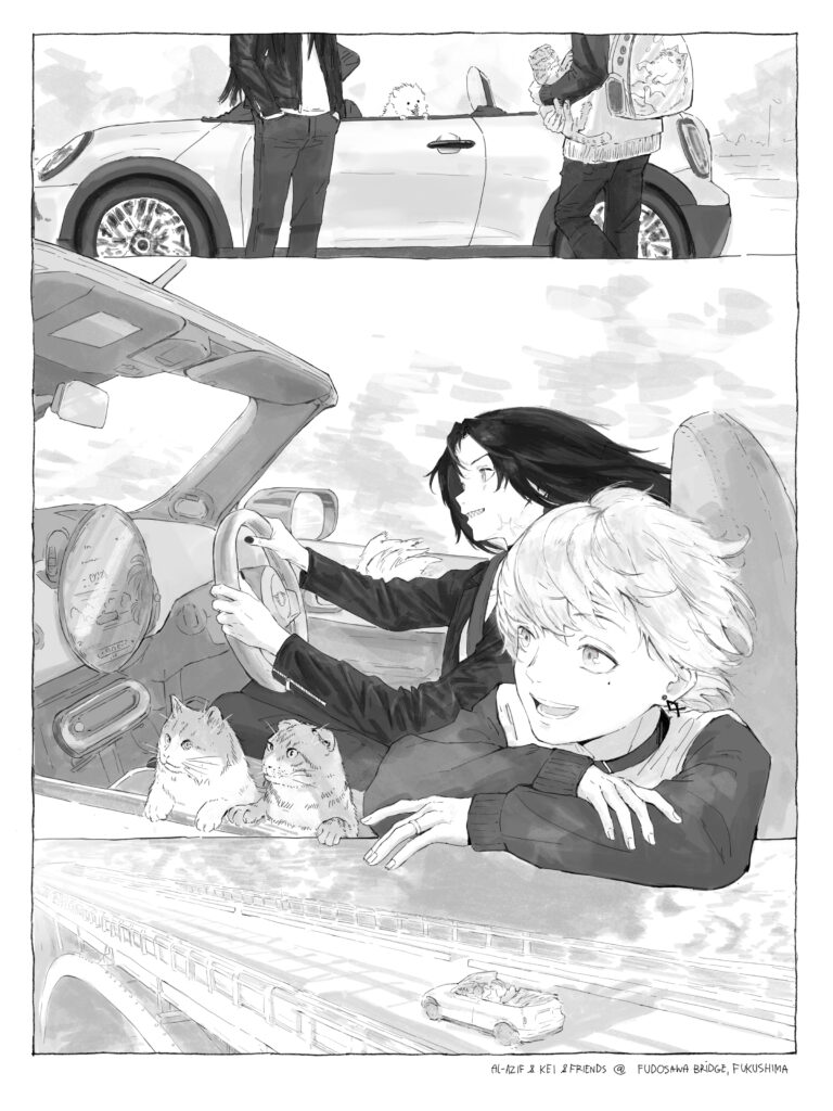 งานแรกของคุณอาลิน่า เขาชอบรูปที่วาดแซมเปิลมาก เลยมาขอแบบนั้นเป๊ะๆ ดีเลย ไม่ต้องคิดเยอะเยอะ ก็เลยใส่รายละเอียดเต็มที่ รูปที่สองเป็นนาสุ au หนุ่มๆ ไปเที่ยว อยู่ดีๆ ก็อยากวาดรถซะงั้น รายละเอียดเยอะ มั่วๆ ไปมั่ง แต่ก็สนุกดี แมวตอนแรกวาดเแบบตลก ออกมาไม่เวิร์คเลย แก้เป็นแบบปกติแทน คงจะวาดอะไรน่ารักไม่ได้แล้ว…